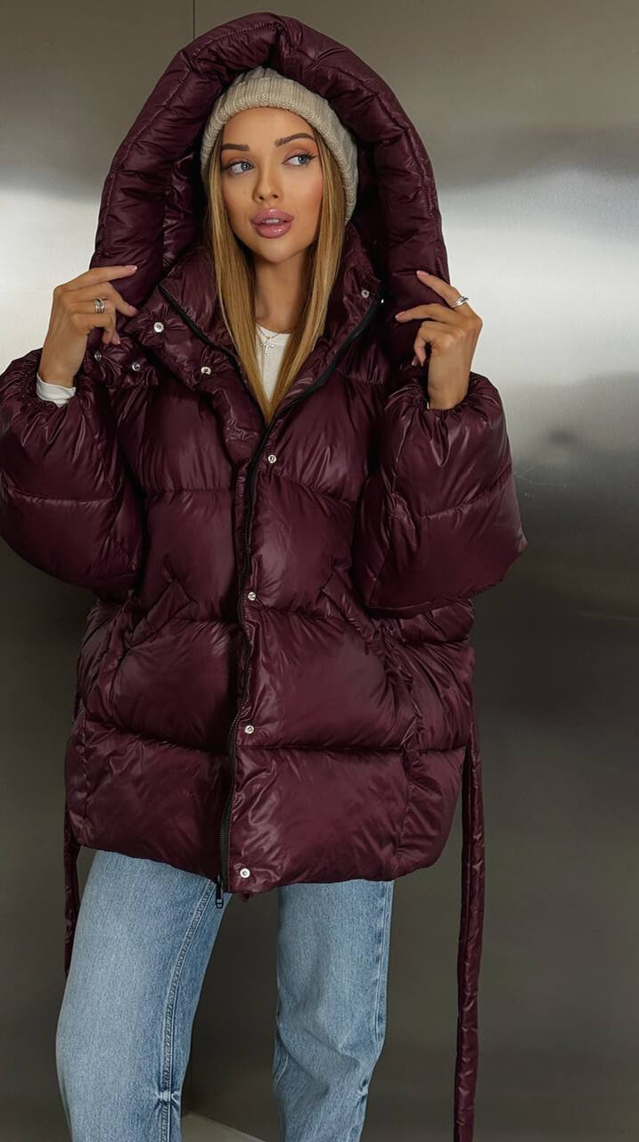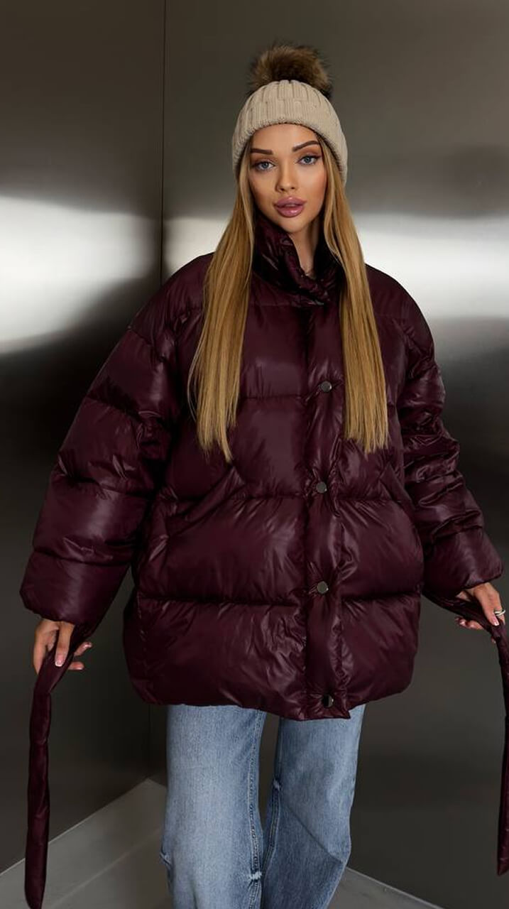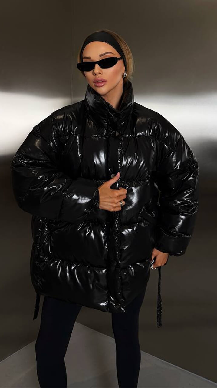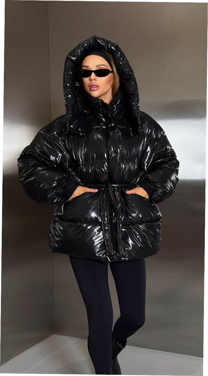 Куртка просто 🔥! Дуже стильна, блиск гарний, не "дешевий". Підкреслює талію, виглядає дорого. Ношу з кросівками і з чобітками — підходить під усе!